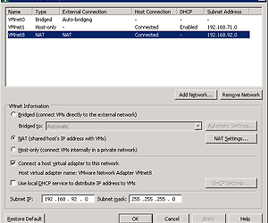 . VMware 상에서 Edit -> Virtual Network Edit 클릭후, VMnet8의 NAT 정보를 수정한다.